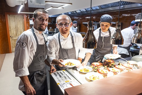 Tast tiene capacidad para 120 comensales distribuidos en tres plantas, que reciben el nombre de las distintas partes que los castellers dan a sus castells. Así, cuenta con un área de comedor y bar casual en la planta baja (pinya), un comedor en la primera planta (folre) y una segunda planta con salones privados donde se ofrecerán menús de degustación (enxaneta).