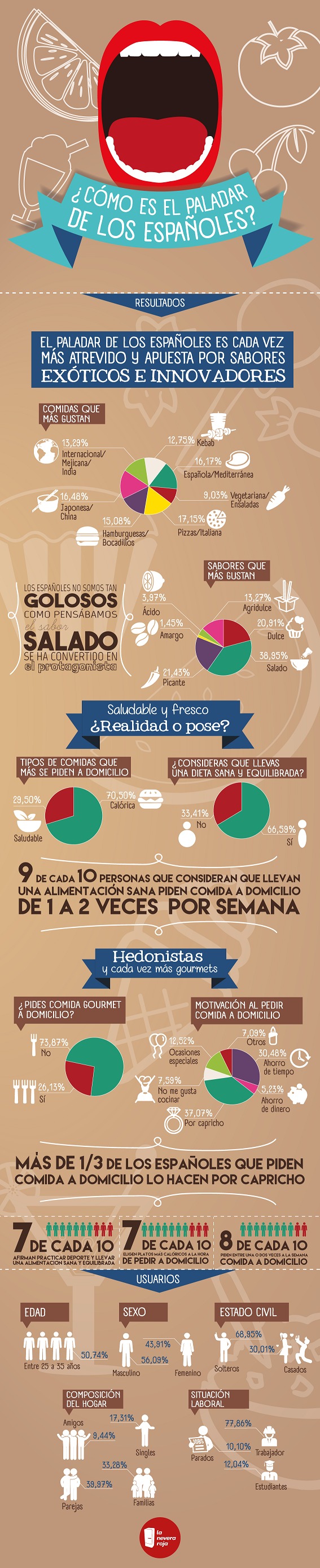 La plataforma de comida a domicilio La Nevera Roja ha realizado un estudio del paladar de los españoles que revela que los gustos gastronómicos han evolucionado, registrando una alta tolerancia a los sabores exóticos y con gran personalidad.