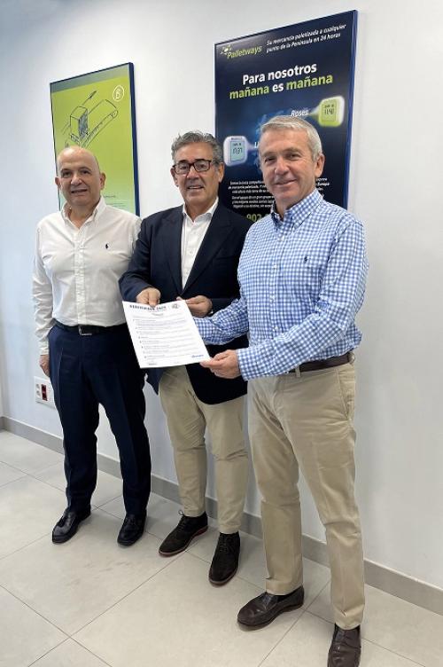 La entrega de los certificados se realizó formalmente por D. Nicolas González, Director de #BONET el 29 de septiembre de 2022 a D. Gregorio Hernando, Director General y D. José Francisco Hernández, Director de Operaciones de #PALLETWAYS respectivamente.