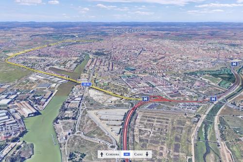 El parque linda con la A4 y tiene acceso directo a la Avenida de las Razas, un punto clave de entrada en la ciudad, y a la SE-30, la ronda de circunvalación. También se beneficiará de los accesos que conectan el Puerto con la SE-40 Sur en su enlace con la A4.
