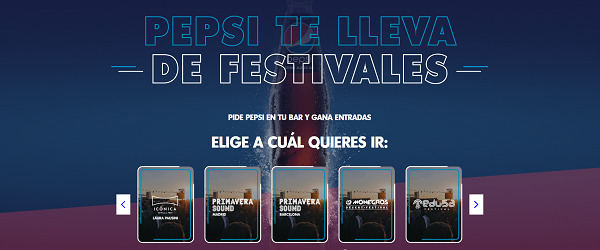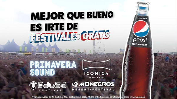 Para participar, el consumidor solo deberá acceder a la web www.pepsi.es/festivales o escanear el código QR de las botellas de vidrio de Pepsi y Pepsi Zero en bares y restaurantes, seleccionar el festival al que desea acudir y subir una foto de la botella como comprobante en la web. A continuación, podrá descubrir si su participación ha resultado premiada con un pase para uno de los festivales Primavera Sound de Barcelona y Madrid, Monegros Desert Festival, Medusa Beach Festival, Icónica Fest en Sevilla, FiestoRon en Las Palmas de Gran Canaria, y Peñón Rock y Mujeres World Fest, ambos en Tenerife. Además, Pepsi Zero estará también presente en los festivales a través de diferentes activaciones que la marca anunciará en sus redes sociales para ofrecer experiencias únicas a sus consumidores.