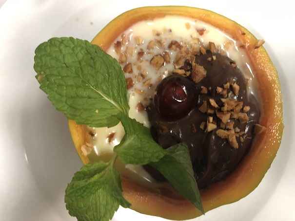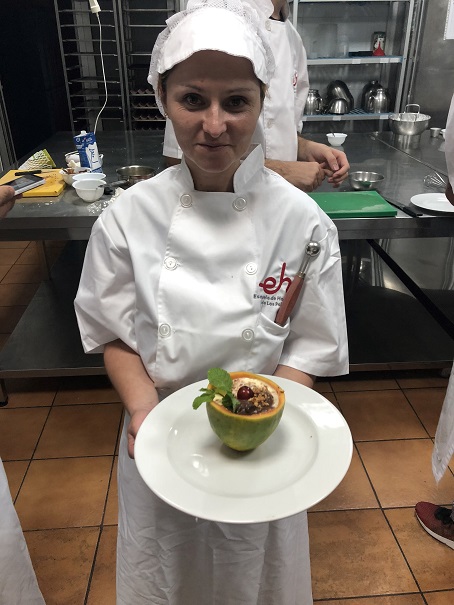 Los futuros talentos culinarios se han puesto manos a la obra para elaborar la receta de aprovechamiento navideña más original. Tras dos meses trabajando en elaboraciones para aprovechar al máximo la comida en estas fechas tan señaladas; el plato ganador ha sido la perla de papaya con dos turrones. Esta receta, elaborada por Beatriz Montesdeocas de la Escuela de Hostelería de Las Palmas, es un exquisito postre elaborado a base de los típicos dulces sobrantes en nuestras mesas en época navideña. La receta consiste en una papaya rellena de turrón de chocolate blanco y negro, almendras picadas y una cereza.
