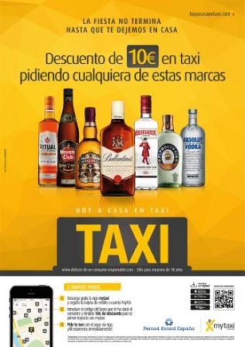 Pernod Ricard y mytaxi se han unido para fomentar el consumo responsable de bebidas espirituosas en Navidad y han puesto en marcha la iniciativa “HOY A CASA EN TAXI”. En una época de muchas celebraciones familiares y de empresas, esta campaña apuesta por fomentar un consumo responsable, ofreciendo una alternativa segura de regreso a casa, en taxi.