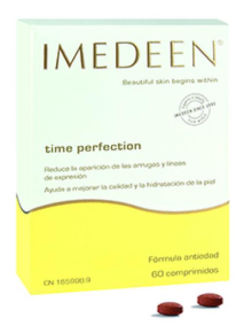 MEDEEN Time Perfection proporciona a la piel los cuidados que ésta necesita y donde más los necesita, en la capa profunda de la dermis, convirtiéndose en el aliado perfecto de tu rutina diaria de belleza.¡Puedes hacer más por tu piel con IMEDEEN Time PerfectionTM!FÓRMULA ANTIEDAD, A PARTIR DE LOS 40Gracias a su completa y potente formulación, los comprimidos IMEDEEN Time PerfectionTM actúan desde el interior, mejorando la calidad y el aspecto de la piel tanto por fuera como por dentro:• UN EXCLUSIVO COMPLEJO MARINOTM – Esta combinación única de proteínas y polisacáridos, contiene elementos similares a los que están presentes de forma natural en la piel.• LYCOPHENCE GS FORTETM – Una potente sinergia de extracto de tomate, extracto de semilla de uva, Vitamina C y Zinc, protege la piel desde el interior. • VITAMINA C – Contribuye a la protección de las células frente al daño oxidativo y ayuda a la formación de colágeno para el normal funcionamiento de la piel.• ZINC – Protege las células frente al daño oxidativo, contribuye a la síntesis normal de ADN, mantiene la piel en condiciones normales y contribuye al proceso de división celular.