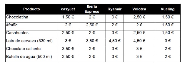 - Gominolas: 1,29 € frente a 4,50 € en easyJet. Aumento del 223%.