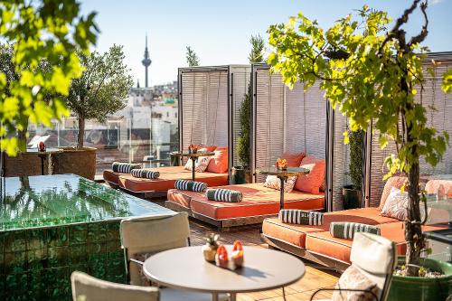 La fabulosa terraza de BLESS Hotel Madrid en Velázquez 62, Picos Pardos Sky Lounge by Martini, Picos Pardos Sky Lounge by Martini es el lugar de referencia para huéspedes y locales desde donde contemplar las espectaculares vistas de la ciudad donde disfrutar de un refrescante baño en la piscina esmeralda o tomar un delicioso cóctel de autor sobre las camas balinesas. Un espacio decorado por Alejandra Pombo, donde evadirse del bullicio de la ciudad y disfrutar de una cocina fresca y vanguardista, en un ambiente íntimo y cosmopolita. Pura experiencia, puro lujo.