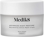 La crema hidratante Advanced Night Restore de Medik8 (58,5€ en mumona.com) cuenta con propiedades antioxidantes y reparadoras que miman y protegen la piel además de alisar las líneas de expresión.