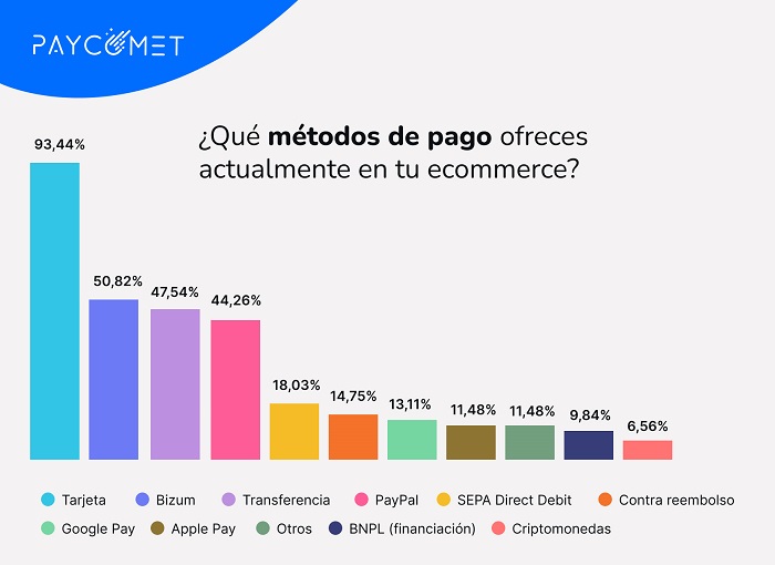 Dentro del customer journey, el proceso de pago tiene su propio universo porque, cada vez hay más diversidad y el comprador espera encontrar ese método de pago favorito que le facilita la compra, desde los más tradicionales como la tarjeta de crédito / débito, hasta otros más innovadores como el compra ahora y paga después (BNPL) o Bizum. Durante el mes de mayo, PAYCOMET, pasarela de pagos para ecommerce, ha realizado una encuesta a profesionales del comercio electrónico con el objetivo de identificar los métodos de pago más populares entre los ecommerce y sus consumidores.