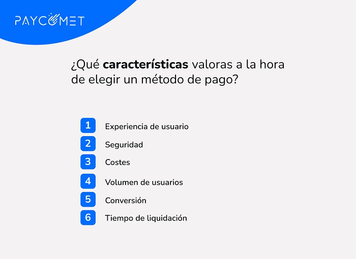 ● Experiencia de usuario y seguridad. En el orden de importancia a la hora de elegir un método de pago u otro, la experiencia de usuario y la seguridad son dos factores clave. En sus experiencias, los compradores buscan procesos fluidos y sencillos. Por lo tanto, es necesario que los métodos sean ágiles y permitan completar el pago en pocos pasos. Por otra parte, la seguridad es fundamental para generar confianza y los comercios online deben tener a su disposición herramientas que ayuden a prevenir, identificar y gestionar posibles fraudes o actividades delictivas.