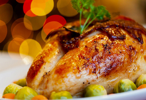 Pavo tradicionalmente asado con compota de invierno y parmentier rústico