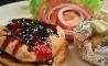 Pastel de batata con salsa de moras y helado de miel