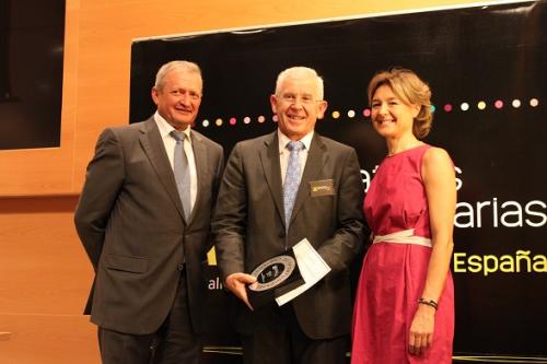 Pie de foto: El presidente de Feiraco, José Montes, con el galardón acompañado por Ángel Villafranca, presidente de Cooperativas Agro-Alimentarias de España y la ministra de Agricultura y Pesca Isabel García Tejerina