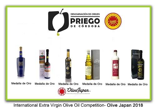 Los aceites de oliva vírgenes extra con Denominación de Origen Protegida “Priego de Córdoba” consiguen seis medallas de oro en el Concurso Internacional Olive Japan 2018.