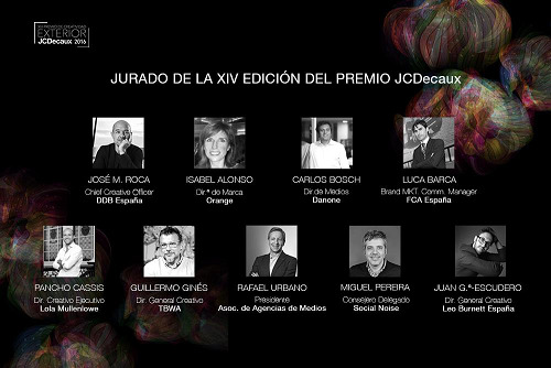 José María Roca, Chief Creative Officer de DDB España, preside el jurado de este año. Estará acompañado por otros ocho profesionales para elegir las mejores creatividades nacionales del medio. Por un lado, en representación de las agencias creativas, evaluarán las piezas Pancho Cassis, Director Creativo Ejecutivo de Lola Mullenlowe; Juan García-Escudero, Director General Creativo de Leo Burnett España; y Guillermo Ginés, Director General Creativo de TBWA. Por otro, será Miguel Pereira, Consejero Delegado de Social Noise, el representante de las agencias creativas digitales en el jurado de esta Edición. Los anunciantes estarán presentes este año en el Premio JCDecaux a través de los representantes de Orange, Fiat y Danone: Isabel Alonso, Directora de Marca, Comunicación e Investigación de Mercado de Orange; Luca Barca, Brand Marketing Communication Manager de FCA España y Marketing Manager de Alfa Romeo y Jeep; y Carlos Bosch, Director de Medios de Danone. Para terminar, la Asociación de Agencias de Medios completará la labor del jurado con su Presidente, Rafael Urbano, como máximo exponente.