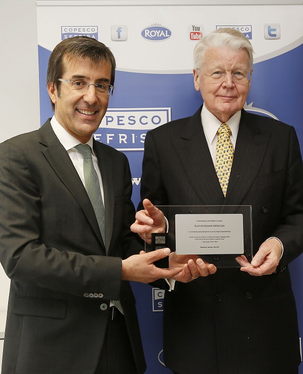 El Presidente de Islandia, Ólafur Ragnar Grímsson, ha visitado hoy las instalaciones de la empresa Copesco-Sefrisa, ubicadas en Sant Esteve Sesrovires (Barcelona), con el objetivo de conocer de primera mano la compañía que comercializa bajo la marca Royal, bacalao procedente de Islandia desde hace más de 150 años.