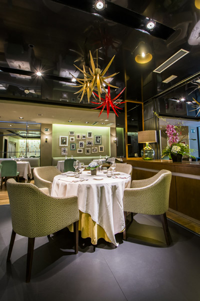 Así, además de cambiar los sabores, empiezan a llegar creaciones frescas y ligeras, de lo más apetecible en cuanto empiezan a salir los primeros rayos de sol. Aparecen el Gazpachito de fresas con mimosa de bogavante, la Ensaladilla trufada con trigueros y zanahoria baby, las Milhojas de berenjenas con brandada de bacalao y miel de arce, unos Tallarines de vegetales a la carbonara con trufa o los Ravioli de calabacín relleno de presa ibérica, que pese a lo que sugieren los nombres de estos dos últimos, son aptos para celíacos, al igual que otras muchas opciones. Tampoco hay que perderse los sencillos pero exquisitos Pétalos de tomate con cebolleta asada y anchoas del Cantábrico, donde se aprecia la gran calidad de las materias primas con las que se trabaja en este restaurante.