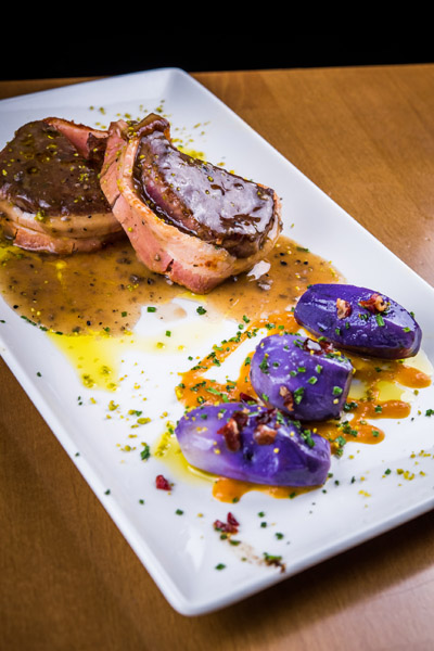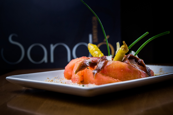 Más allá de las verduras hay otros platos que invitan a pasar varias veces por Sandó para dar buena cuenta de ellos: Lasaña de chipirones y champiñones, Pulpo en tempura con mousse de cava, Medallones de merluza con carabineros y salsa de cítricos, Costillar de ibérico con su adobo en teriyaki y puré de queso ahumado, Turnedó de vacuno con patata violeta confitada… y entre los dulces, una Tarta de galleta y chocolate con fresas al vodka o su tradicional Sándwich de chocolate con vinagreta de naranja.