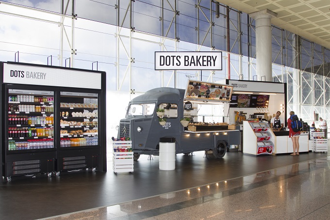 Dots Bakery es la primera furgoneta de venta de comida del Aeropuerto de Barcelona-El Prat. Además de la caravana, el espacio cuenta con una amplia zona de mesas en una zona para la relajación y descanso. Entre la amplia oferta gastronómica destacan los cronuts, bagels, smoothies y productos sin gluten. No es la primera vez que Areas se sube a la moda de los food trucks, ya que el verano pasado puso en marcha varias caravanas gastronómicas en algunas de las áreas de servicio que gestiona en las autopistas españolas y recientemente inauguró su primer Food Truck en el Aeropuerto de Palma de Mallorca.