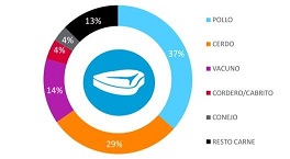 Por variedades, la carne de pollo sigue siendo la preferida de los consumidores con una cuota del 37% de las ventas, seguido del cerdo (29%) y el vacuno (14%). Sin embargo, la carne de cerdo es la que gana mayor cuota de mercado de 2013 a 2014, debido también a una bajada de su precio (un 2.5% menos que en 2013). En charcutería, el jamón york (19%) y el jamón serrano (17%), son las dos variedades que mayor cuota de mercado en ventas.