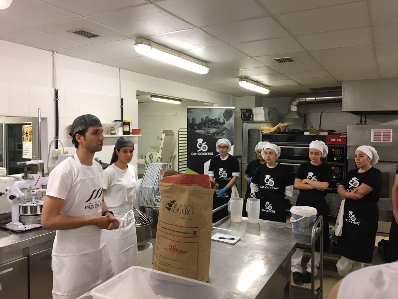 El Programa Co-cooking de Hijos de Rivera viajó hoy hasta Asturias para celebrar su primer taller fuera de Galicia en el que un total de 25 alumnos del CIFP de Hostelería y Turismo Principado de Asturias de Gijón pudieron elaborar su propio pan artesano de la mano del obrador Pan da Moa.