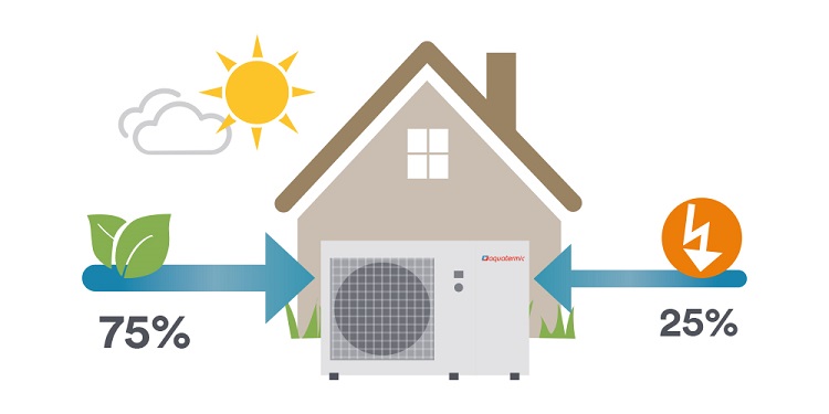 La Bomba de calor es una tecnología que utiliza la energía contenida en el aire para producir agua caliente sanitaria, calefacción y climatización de las viviendas o espacios cerrados, de manera menos contaminante, consiguiendo un ahorro energético de hasta el 75%. La aerotermia no sólo ofrece calefacción sino también refrigeración en verano y agua caliente sanitaria en cualquier época del año, y gracias a la recuperación del calor, puede calentar el agua caliente sanitaria de forma gratuita durante el ciclo de refrigeración.