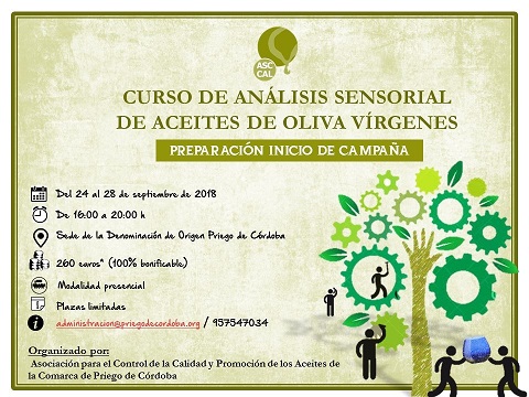 La Asociación para el Control de la Calidad de los Aceites de la Comarca de “Priego de Córdoba” (ASCCAL), pone en marcha un nuevo Curso de Análisis Sensorial, previo al inicio de campaña dirigido a aquellos que desean agudizar sus aptitudes como catadores y avanzar en el apasionante mundo del análisis sensorial del aceite de oliva virgen.