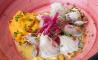 Con un toque crujiente de choclo, este ceviche será especial por su puré de boniato con leche de coco y chipotle que lo hacen diferente, un toque fresco y picante a la vez.