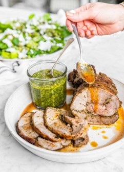 2- Colocar el cordero en un bol grande y cubrirlo con la mezcla de hierbas y especias. Mezclarlo bien y dejarlo macerar durante 30 minutos. Colocar el cordero sobre papel de horno y verter el adobo restante del bol sobre la carne. Enrollar sobre sí mismo el cordero desde el extremo más estrecho y atarlo con hilo en secciones de 2 cm.