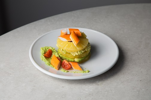 Tartar de Krissia®, piña y aguacate Ingredientes para 2 personas 8 barritas Krissia® ½ aguacate ½ piña fresca 6 tomates cherry AOVE Vinagre Sal Elaboración