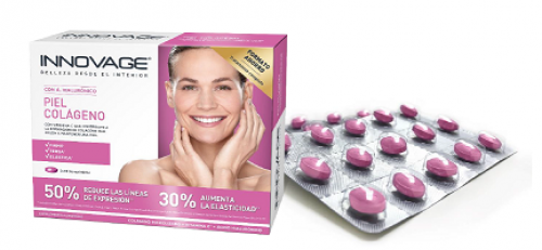 Innovage Piel Colágeno ayuda a mantener una piel firme, tersa y elástica gracias a la vitamina C, que contribuye a la formación normal del colágeno para el funcionamiento normal de la piel; el colágeno, una proteína que se encuentra naturalmente en la piel y es esencial para su estructura; y el ácido hialurónico que aporta hidratación a la piel.