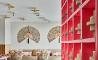 Su decoración se caracteriza por líneas sencillas y geométricas que potencian las sensaciones de armonía y equilibrio. Además, la madera y el ratán son los materiales que protagonizan las paredes, sillas y otra decoración de la estancia, que contrastan con el color rojo –con gran significado en Asia– en mesas y cubertería. Otro de los elementos que otorgan un carácter único a la estancia es la mesa que preside el centro del espacio, diseñada siguiendo el modelo de los restaurantes asiáticos, y que puede ser compartida por varios comensales.