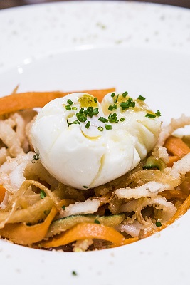 En sus fogones, este invierno, además de estrellas de la carta como el Ravioli de calabacín relleno de presa ibérica, Marmitako de atún rojo, Steak tartar templado o el Tournedó de vacuno con patata violeta confitada, se cocina una propuesta de menú muy atractiva -todos los días de la semana, tanto a mediodía como por la noche- que sigue la línea habitual: gastronomía clásica con un excelente producto y una impecable presentación.