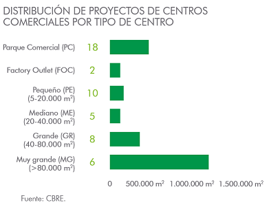 Si bien en 2018 se prevé la apertura de entre 5 y 10 nuevos complejos, con una SBA total de 175.000- 275.000m2, se prevé que para 2019 y 2020 se añadan alrededor de 300.000-350.000 m2 cada año. “La tipología de los centros comerciales en desarrollo en nuestro país es muy variado, desde centros pequeños hasta muy grandes, u outlets”, ha explicado Gonzalo Senra, director nacional de Retail de CBRE.