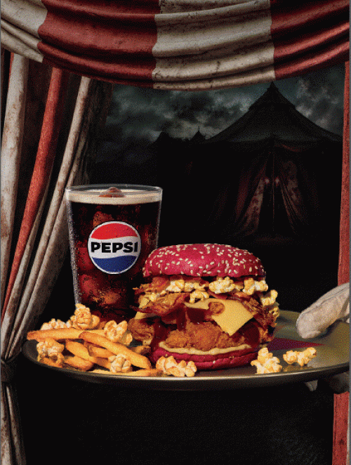 Este Halloween, Red Bob regresa a Ribs para presentar su última creación: la “Chicken Circus Burger”, una hamburguesa de Edición Limitada, elaborada con pollo crispy, queso emmental, bacon, cebolla crujiente, mayonesa ahumada y salsa honey, servida en un espectacular pan rojo, en homenaje al temido personaje. Todo ello acompañado de patatas fritas y palomitas sweet & salty sabor bacon, para completar una experiencia única y aterradoramente deliciosa.