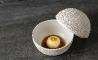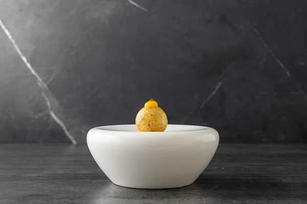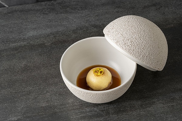 Temiño se crió entre fogones, aprendiendo al calor de su referente en cocina, su madre, y después se formó en la escuela María Madre de su Burgos natal, desde donde partió para realizar cursos y stages en Tokio, Lyon, Bruselas… Con todo ese bagaje y tras varios reconocimientos en concursos de cocina de toda índole, en 2014 emprende junto a su compañera de negocios y vida, Cristina Lázaro, una aventura en la que depositan todas sus ilusiones y que 8 años después, sigue dando pasos hacia adelante. El que están a punto de dar es sin duda uno de los más significativos, un cambio de escenario, pero quieren cerrar esta etapa con un agradecimiento a la fidelidad y confianza de los clientes que les han visto crecer, en forma de menú, uno muy especial. 14/22 es la síntesis de 8 años de La Fábrica a través de 12 de sus creaciones, los platos más icónicos o más queridos del equipo y los comensales. Como explica la minuta, “cada bocado muestra nuestra forma de ver la gastronomía y hacia dónde queremos ir”.