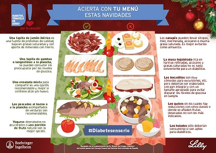 Las fiestas navideñas son días de alegría y reencuentro familiar, pero también de excesos alimentarios y de un mayor sedentarismo. Las personas con diabetes tipo 2 pueden disfrutar de estas fiestas con normalidad, pero tomando una serie de precauciones para no perder el autocontrol de la enfermedad y evitar así la aparición de complicaciones como problemas cardiovasculares, que están detrás de la mitad de las muertes entre este colectivo de pacientes(4,5). Desde la campaña DIABETES, tómatela en serio se han desarrollado una serie de recomendaciones junto con el Dr. Ramón de Cangas, miembro del Comité Asesor del Consejo general de Dietistas-Nutricionistas.