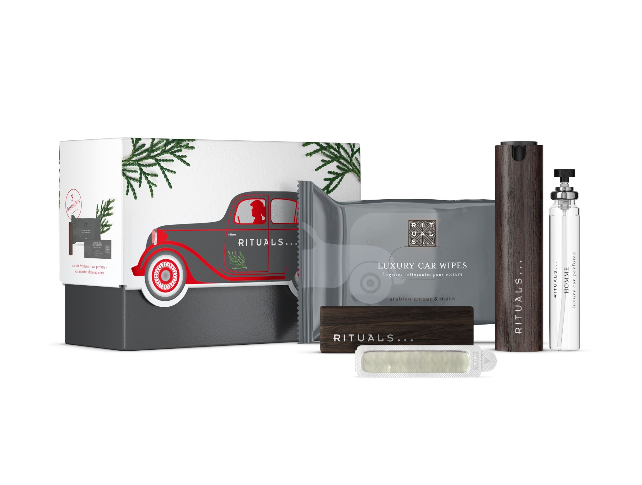 Un regalo para hacer de cada trayecto un viaje sensorial. Un cofre de regalo con productos imprescindibles para aromatizar e higienizar el coche, con el inconfundible aroma de Rituals Homme, con una poderosa mezcla de ámbar y almizcle.