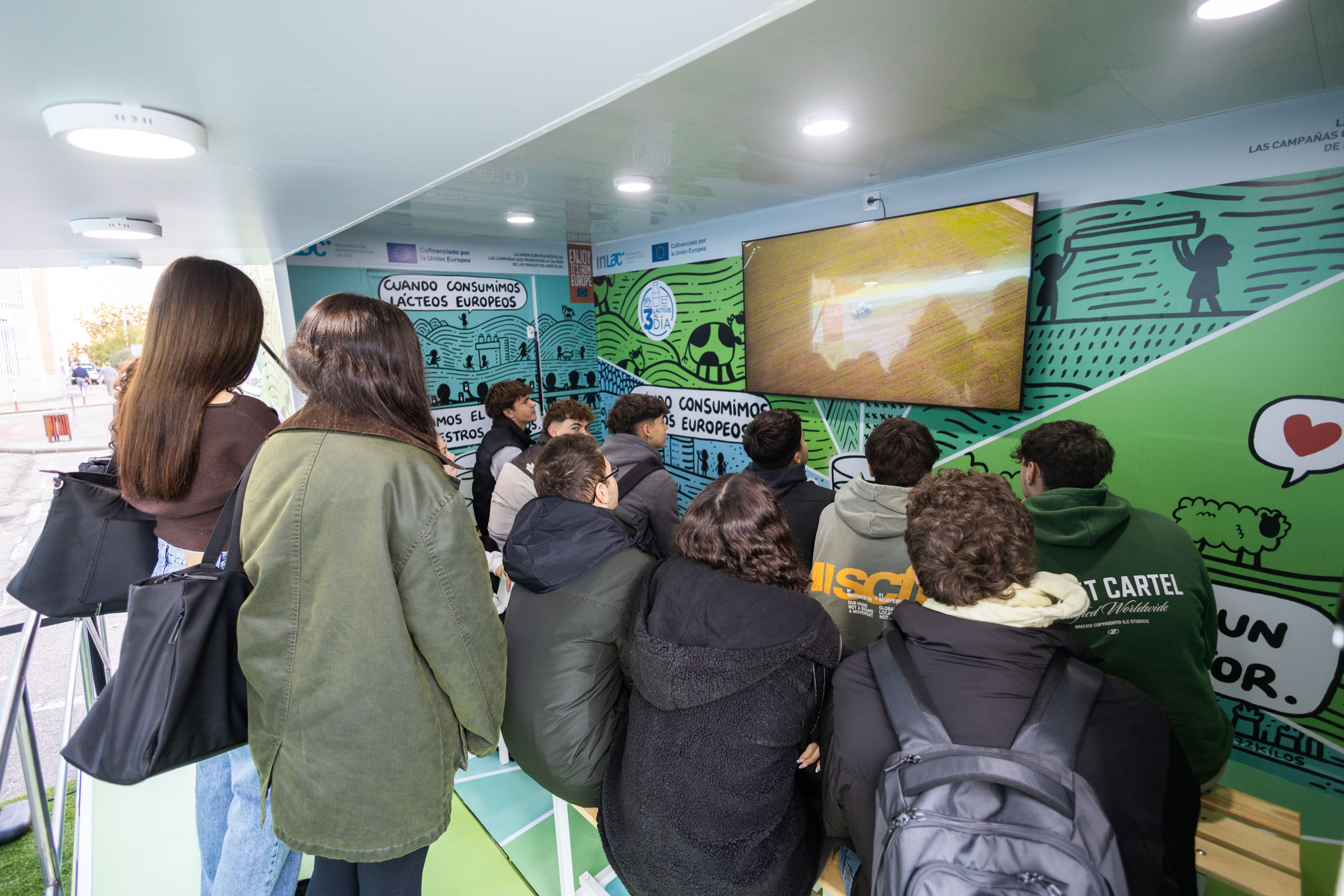 El roadshow, que continuará su recorrido en 2026 por nuevas ciudades, se ha convertido en un espacio moderno, cómodo y visualmente muy atractivo. En el interior, los visitantes pudieron sentarse en las bancadas frente a una pantalla para visualizar un vídeo infográfico que explicó los valores sostenibles de un sector comprometido con el medio ambiente y con el desarrollo rural. Los ciudadanos pudieron seguir las redes sociales de campaña e incluso participar en “la ruleta láctea de la suerte”, un juego divertido que les permitió optar a diferentes premios directos.