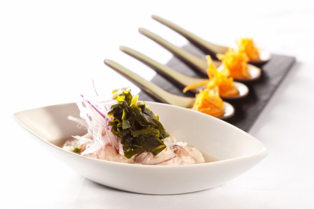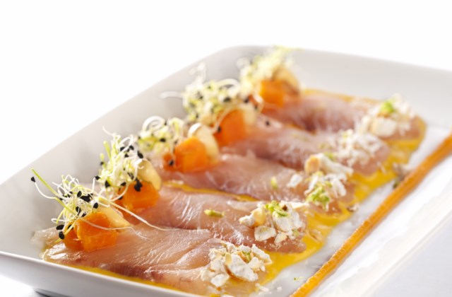 El pescado (que Céspedes corta con precisión de samurái), estrella absoluta de los ceviches, tiraditos y sushis más originales, es un alimento muy nutritivo y bajo en calorías (los pescados blancos contienen unas 80 calorías por 100 gramos, y los azules unas 120 y 200 calorías por 100 gramos). Además, tiene propiedades antiinflamatorias, ayuda a pensar mejor, protege nuestros huesos y nuestro sistema cardiovascular, es un relajante natural… Y al estar crudo o semi-crudo, se da una mayor absorción de ácidos grasos Omega 3 y micronutrientes.