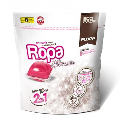 FLOPP Ropa 2 en 1, es un detergente en cápsulas, con suavizante incorporado para ropa blanca y de color. Diseñado para todos los tipos de tejido existentes en el mercado, protegiendo las fibras del desgaste y proporcionando más intensidad y brillo a los colores. Además, su formato en cápsulas hidrosolubles ‘directas al tambor’ permite conseguir un mayor rendimiento y eficacia, aprovechando todo el poder del producto en cada lavado.