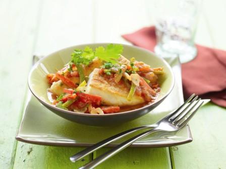 Como plato fuerte, Royal propone Bacalao al Chilindrón con tomates, pimiento rojo, pimiento verde y guindilla.