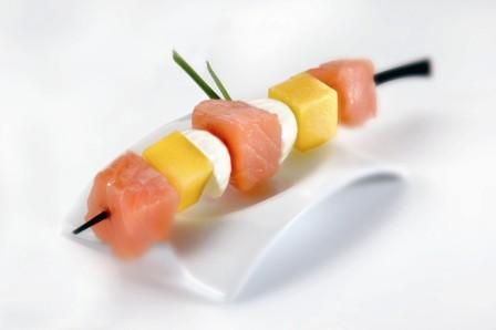 En segundo lugar y como entrante, Royal propone distintos platos para compartir como el vol-au-vent con Cintas de Salmón Ahumado, condimentado con nueces picadas y salsa tártara; la Brocheta con Dados de Salmón Ahumado acompañado con queso fresco y mango; y la ensalada de invierno con Salmón Ahumado, con guacamole y granada.