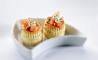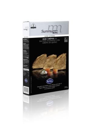 En primer lugar y como aperitivo, la marca Royal apuesta por losSorbetes de marisco y las Mini crepes de pescado, deliciosos aperitivos congelados de la nueva gama Summumm para comer en caliente. Las crepes pueden calentarse al microondas o en una sartén, ligeramente untadas con mantequilla para evitar que se enganchen. Los sorbetes, por su parte, ofrecen 4 unidades de vieira con salsa de tomate y 4 de cangrejo con salsa de langosta y pueden prepararse al “baño maría” o en el microondas.