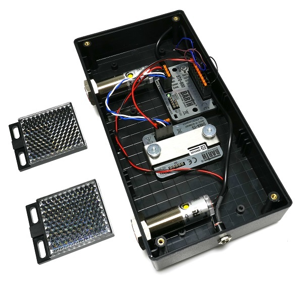 Dos sensores fotoeléctricos de proximidad, o barreras fotoeléctricas, detectan la dirección del movimiento, mientras que un PLC (Programmable Logic Controller) miniaturizado calcula el número de personas que entran y salen de la tienda en tiempo real. Una pantalla táctil CAN, protegida por contraseña, se utiliza para prefijar el número máximo de personas y también sirve de "semáforo", encendiéndose en verde cuando se permite el acceso y en rojo cuando se deniega el acceso. También hay una alerta audible. El PLC procesa los datos y controla la pantalla.