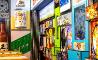 La pared del fondo, opuesta a los vanos, constituye quizá la parte más original y atractiva, sobre todo para los jóvenes, y los no tanto, ya que está compuesta por imitaciones de las máquinas de recreativas y de videojuegos de los años 90.
