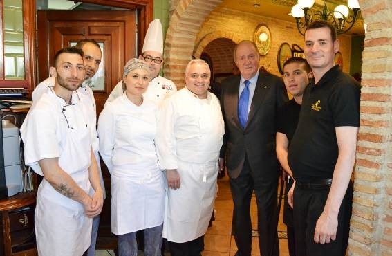 Sorprendidos e incrédulos. Así se quedaron, abreviando en calificativos, los clientes del Restaurante Cruz Blanca Vallecas cuando vieron aparecer por la puerta del local al S.M. el Rey Juan Carlos. Acudía a esta popular casa de comidas vallecana el pasado 21 de marzo atraído por la fama de su Cocido Madrileño, el Mejor de España según reza en un premio otorgado por los más reputados especialistas en este guiso secular, que se añade a una larga lista de galardones que adornan sus vitrinas y fogones.