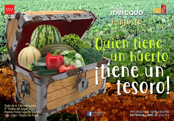 Agosto, mes de vacaciones por excelencia, es una buena oportunidad para dar una vuelta por la Casa de Campo, entre el lago y Madrid Río, y encontrar en la mañana del primer sábado del mes un oasis verde, lleno de productos frescos para combatir el calor, reponer fuerzas y llenar la despensa para alimentarnos de una forma sana y natural. Por supuesto, visitando el DÍA DE MERCADO DE LA CÁMARA AGRARIA, donde sin duda podrás comprobar lo cierto de nuestra propuesta de este mes: QUIEN TIENE UN HUERTO ¡TIENE UN TESORO!.