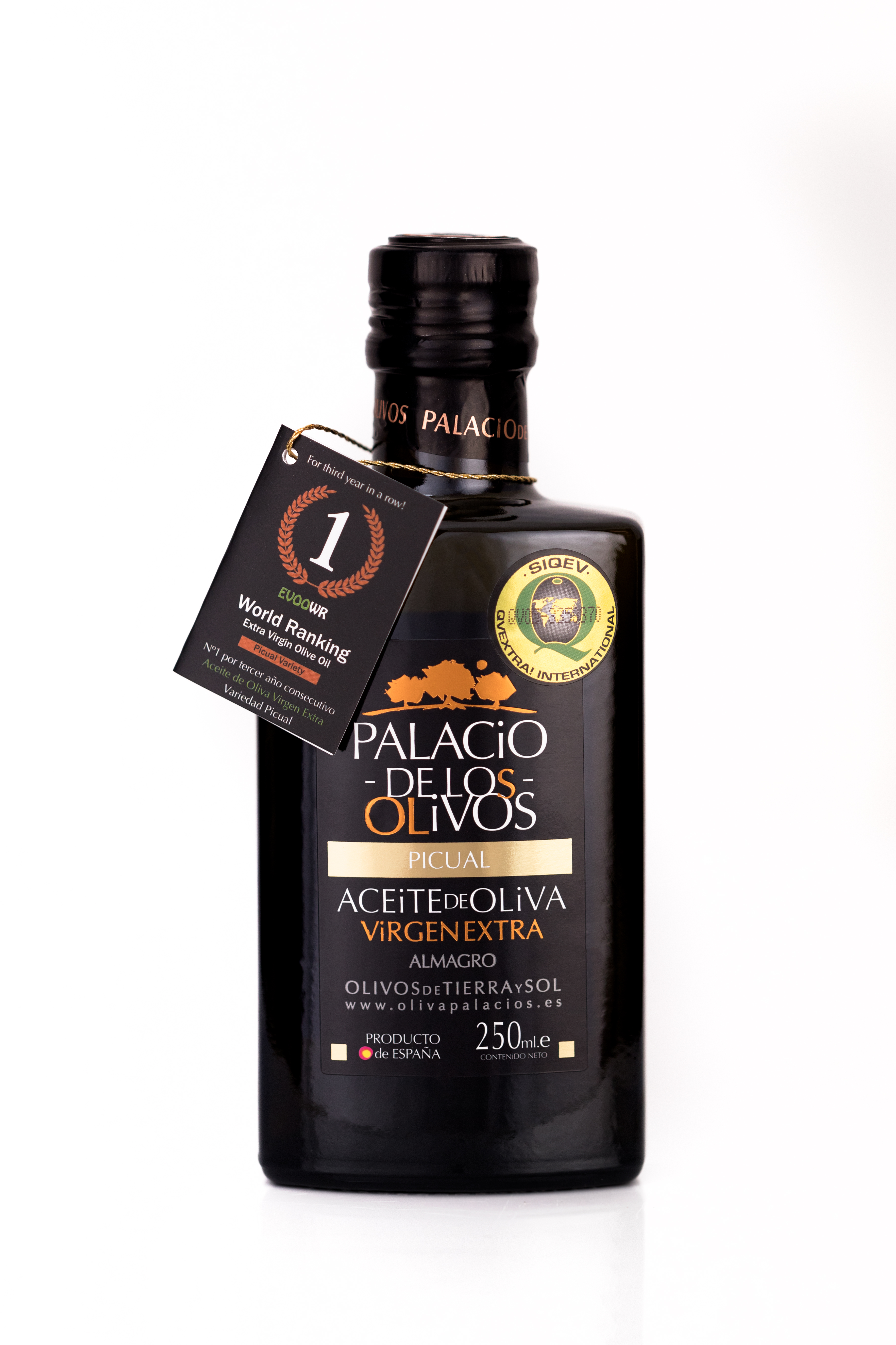 Palacio de los Olivos ha sido reconocido ocho años consecutivos como el n.º1 del mundo en variedad Picual por el ranking internacional The EVOO World Ranking, y también ha logrado el mismo reconocimiento en variedad Arbequina durante cuatro años.