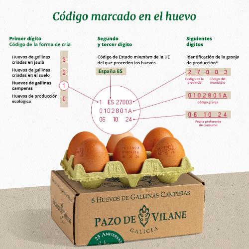 - Si el dígito es 1, como es el caso de los huevos de Pazo de Vilane, estamos hablando de huevos camperos, que son los que proceden de gallinas criadas al aire libre o con acceso diario a parques exteriores.