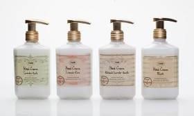 3.Hand cream de 200ml o 50ml. Gracias a la previa exfoliación de manos, la crema hidrata la piel exfoliada en profundidad penetrando en los poros cutáneos e hidratando todas las capas de la piel. Hand cream está hecha a base de manteca de Karité y Aloe Vera. Existe en dos formatos: tubo de 50ml y botella de 200ml.